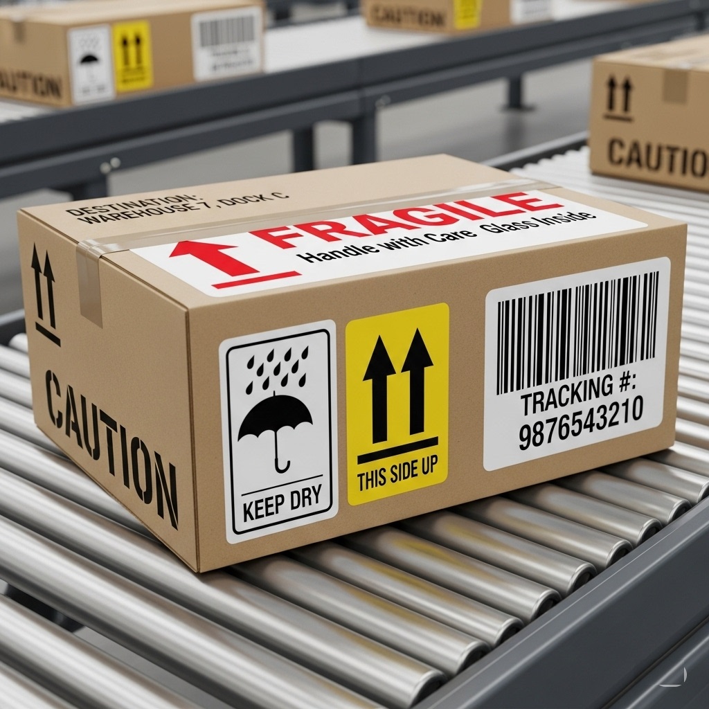 - چسباندن چندین برچسب “شکستنی” (Fragile) و “با احتیاط حمل شود” (Handle With Care) روی بسته برای اطلاعرسانی به حملکنندگان.